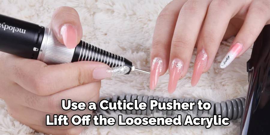 If you have experience with nail tools, using an electric nail drill can speed up the process. Carefully use a sanding bit to file down the acrylic surface until only a thin layer remains. Be gentle and avoid drilling too close to the natural nail. Once the bulk is removed, you can soak the remaining product in acetone for a few minutes and remove the rest with a pusher. This method minimizes soak time and reduces acetone exposure but requires a steady hand to avoid damage.